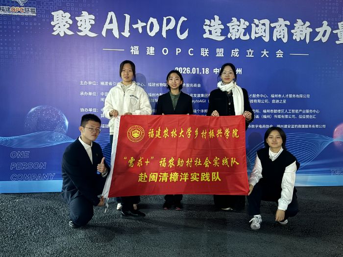 2026年1月25日,全国首个“乡村OPC百人领秀征集大会暨福建省‘师带徒’引凤计划启动仪式”在福州市闽清县樟洋村圆满落幕。这场以“AI赋能乡村超级个体”为核心的盛会,不仅标志着福建省首创“人工智能+一人公司”乡村振兴新范式,更凝结着福建农林大学乡村振兴学院“需求+”福农助村社会实践赴闽清樟洋实践队10名青年学子的七天心血。从会前研学筹备到会中志愿服务,从盛会保障到长效助农,这支青年队伍以青春之力托举乡村振兴梦想,用实践诠释了新时代大学生“把论文写在大地上”的使命担当。