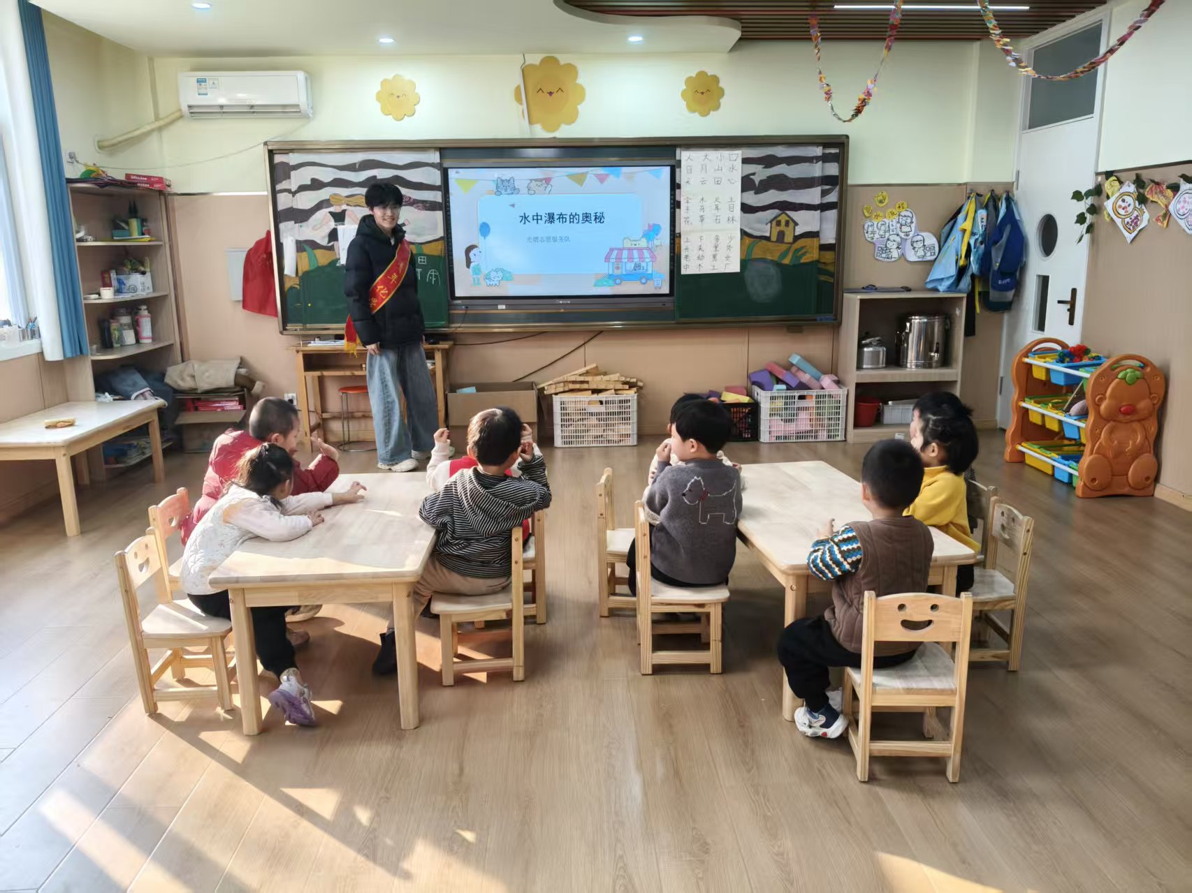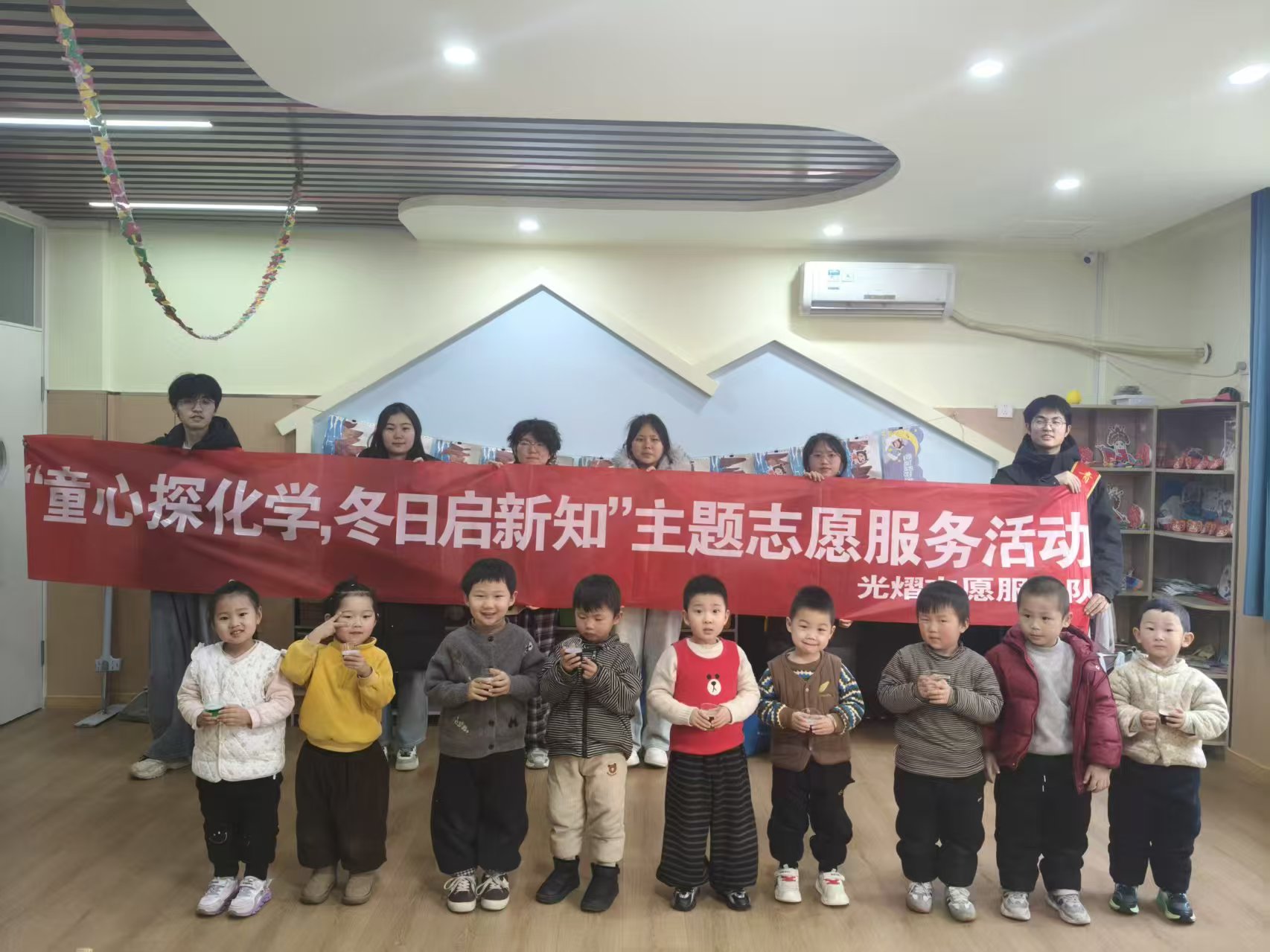 1月24日,化学化工学院光熠志愿服务队走进山东省聊城市东昌府区怡景幼儿园,开展“水中瀑布的奥秘”志愿服务活动,通过趣味实验向小朋友普及流体密度与界面相关知识,培养科学思维。