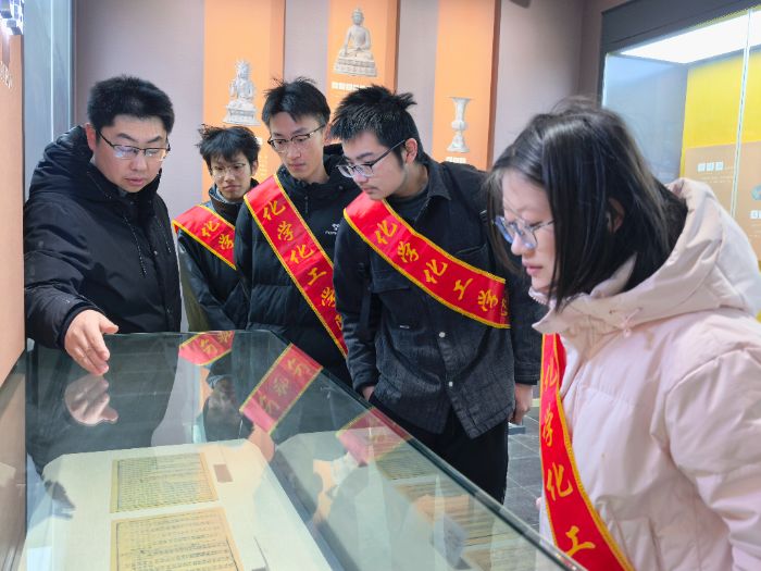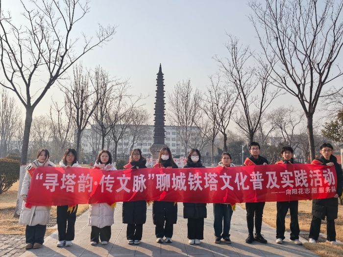 2026年1月23日,聊城大学化学化工学院向阳花志愿服务队成员抵达聊城铁塔本体现场,近距离观察铁塔的形制结构、纹饰细节与风化痕迹,直观感受千年铁铸建筑的厚重质感。塔身分层铸造的榫卯结构、佛像纹饰的细腻雕刻,让成员们对古代工匠的技艺水平有了深刻认知。