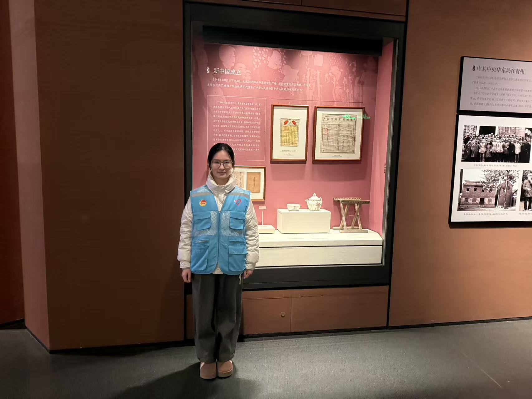 四、楷模馆内受洗礼 2月4日上午,成员赵雪岑走进孔繁森同志纪念馆。在参观中,她不仅观看了全面反映孔繁森生平的展览,还重点研读了其工作日记的部分影印内容。在一件特殊的展品——孔繁森在西藏阿里工作时使用过的药箱前,她听讲解员讲述了孔繁森自学医术、为群众看病的往事。在观影厅,她观看了孔繁森事迹的纪录片片段,其中一句“一个共产党员爱的最高境界是爱人民”让她热泪盈眶。参观后她分享道:“这不是遥远的故事,这就是发生在我们齐鲁大地上、我们前辈身上的真实人生。他的选择、他的坚守,告诉我们‘为人民服务’不是口号,是可以用生命去践行的承诺。”