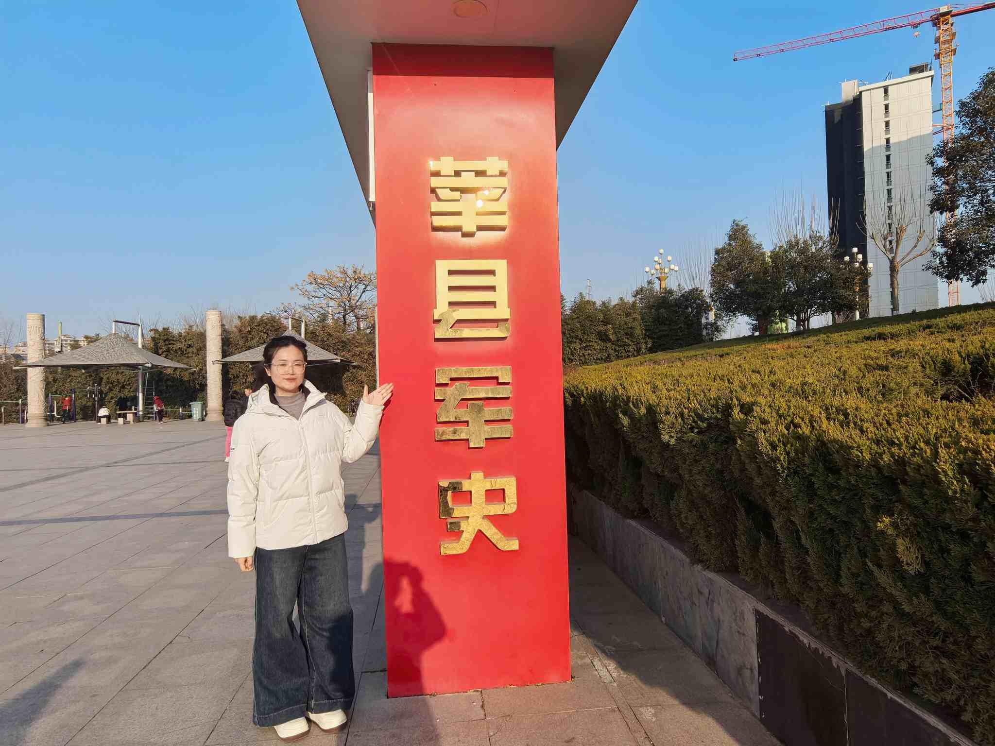 六、军史公园铸忠魂 2月4日,成员邵晓雅走进莘县莘州街道红色教育公园。这座将红色文化与园林景观融为一体的公园,设有“军事历史展廊”“英雄雕塑群”“体验互动区”等功能板块。她沿着时间轴线,仔细观看了反映莘县革命史的图文展板;在“军民鱼水情”主题雕塑前,她聆听了关于“大娘冒死救伤员”的现场讲解;在模拟战壕的体验区,她亲身感受了当年作战环境的艰辛。这种“可看、可听、可体验”的开放式学习,让她感触很深:“红色教育不一定都在场馆里。像这样走到户外,在行走中学习,在场景中感悟,效果更自然、更持久。我们可以借鉴这种模式,让宣讲‘走’出去、‘活’起来。”
