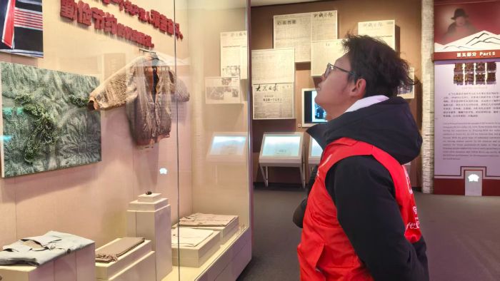 一位队员俯身凑近展柜,目光先掠过里面的旧物,又顺着展板文字慢慢移动。她的眼神里满是认真,仿佛跟着展陈的脉络,一步步走进孔繁森扎根高原、把百姓当亲人的滚烫岁月里。