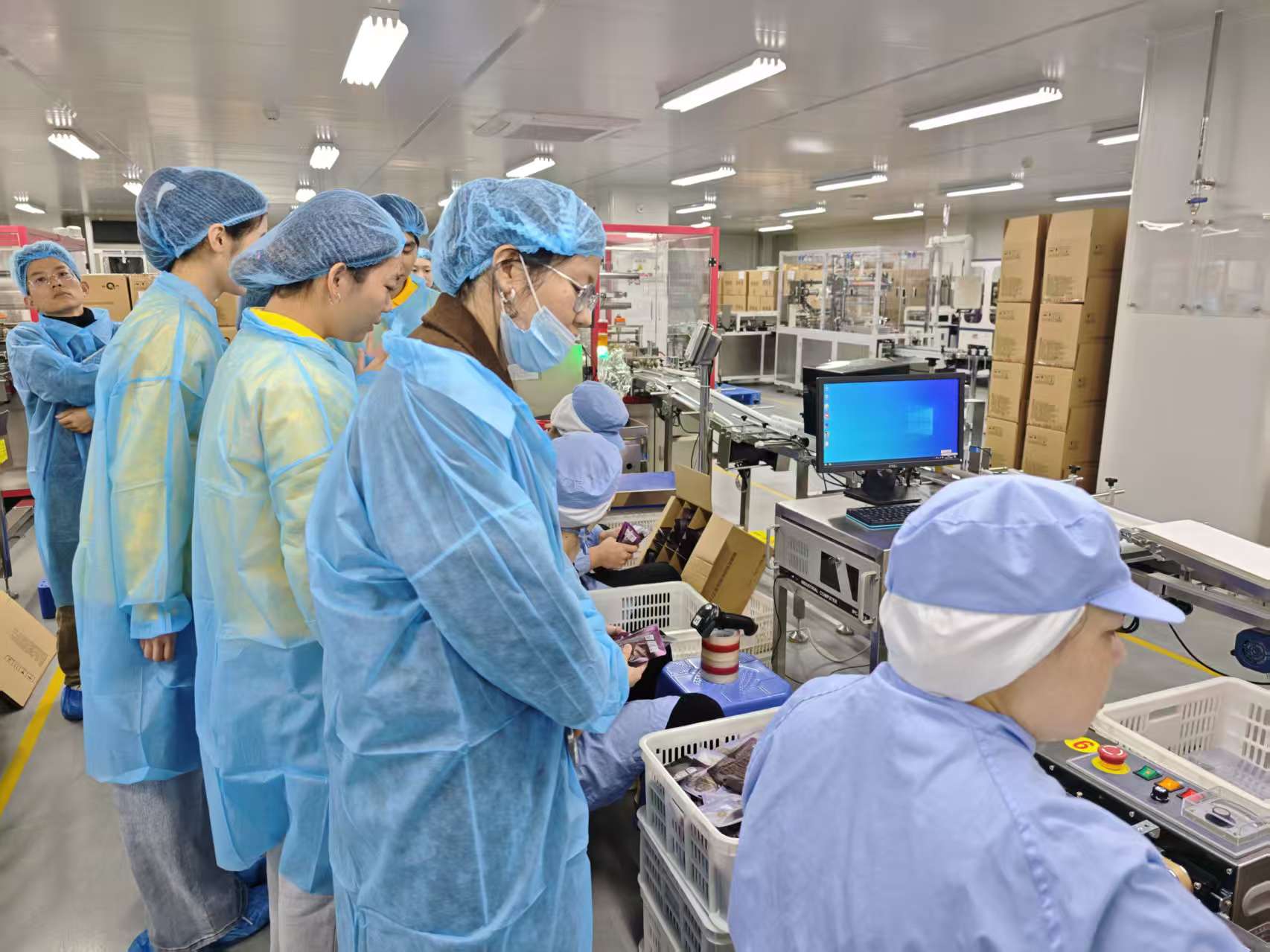 随后,实践队走进片仔癀化妆品生产车间,近距离感受传统经典配方与现代智能生产技术的深度融合。技术人员现场讲解了现代科技如何最大化保留三七、金线莲等核心药用成分的活性功效,让这群未来的美妆健康领域从业者,对“文化传承为根、技术创新为魂”的发展理念有了更为具象的认知。