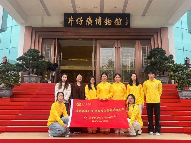 2026年1月21日,厦门医学院公共卫生与医学技术学院“青囊研学”社会实践队伍的9名师生,走进片仔癀博物馆、化妆品车间及展厅,开展了一场以“追寻领袖足迹,激发文化创新创造活力”为主题的寒假社会实践活动,在沉浸式体验中感悟中医药文化魅力,探寻老字号守正创新之路。