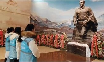 循着历史的脉络,服务队队员在讲解员的引导下开启了沉浸式参观学习。在“雪域场景复原”展区,连绵的雪山壁画、覆雪的帐篷与飘动的经幡,直观还原了孔繁森同志在海拔4700米高原工作的艰苦环境,让队员们真切体会到他“青山处处埋忠骨,一腔热血洒高原”的赤诚与坚守,家国情怀在身临其境的感受中愈发浓烈。