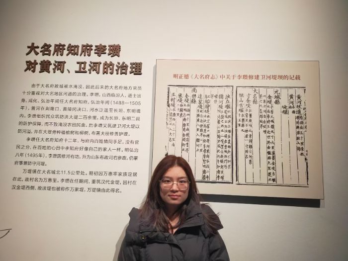 在大名运河博物馆,实践团成员了解了明代大名府知府李瓒的治水功绩:他在任期间,面对黄河决口泛滥,组织民众修筑了两百余里防洪大堤;他还主持重筑汉代金堤,使所在村落得名“万堤里”,发展为如今的万堤镇。实践团成员对古代官员以民为本、务实担当有了深刻认知,也真切体会到水利工程对民生安稳与地方发展的深远意义。