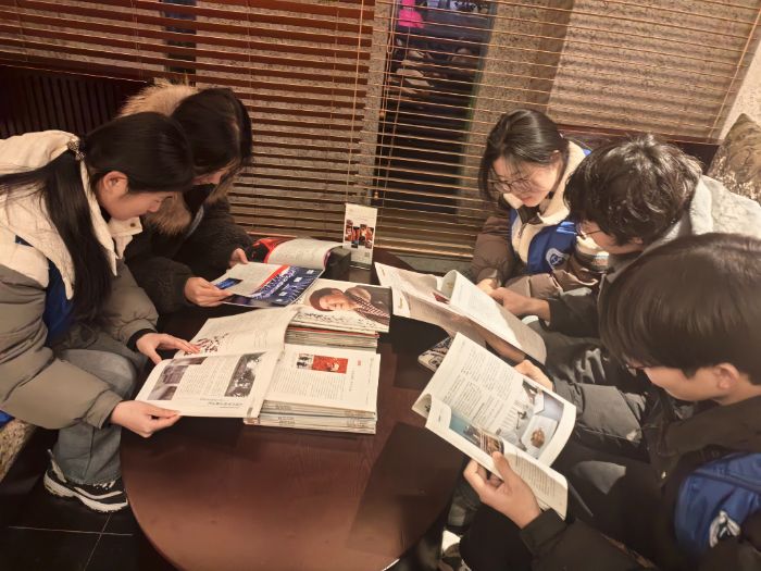 图为团队成员在再芬黄梅公馆内阅读黄梅相关书籍。姚钟航供图