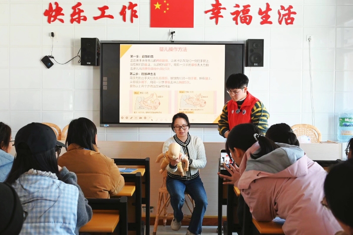 在南山中复小学,面向教师群体的“脑出血的防治”与“海姆立克急救法”科普讲座热烈开展。宣讲过程中,台下教师神情专注:有的举起手机录下关键步骤;有的边听边翻阅宣传手册;还有的跟着模仿手势。实操环节气氛更加活跃,多位教师主动上台,在队员指导下认真调整手法。一位教师在尝试操作后表示:“掌握了这些知识,今后在校园里面对突发情况,心里更有底了,也能更好地保护孩子们。”