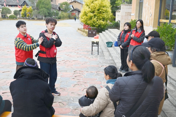 健康知识的普及不止于既定形式。在红军长征第一村——中复村,实践队员走上红军街,深入长征出发地景区及村内,开展了更具针对性的健康服务。
