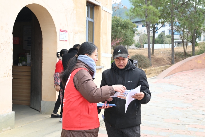 队员们通过分发健康宣传手册、与村民围坐交流,进行“一对一”深入解答。面对村民们提出的“降压药能不能隔天吃”、“孙子吃东西噎住了该怎么处理”、“平时饮食要注意什么”等具体问题,队员们结合实例,用最通俗的语言耐心解释,将“用药知识”、“高血压日常保健”、“海姆立克急救法”等关键信息,融入家常对话中。