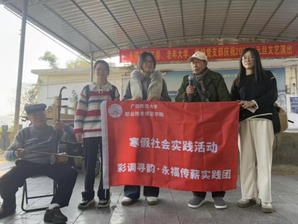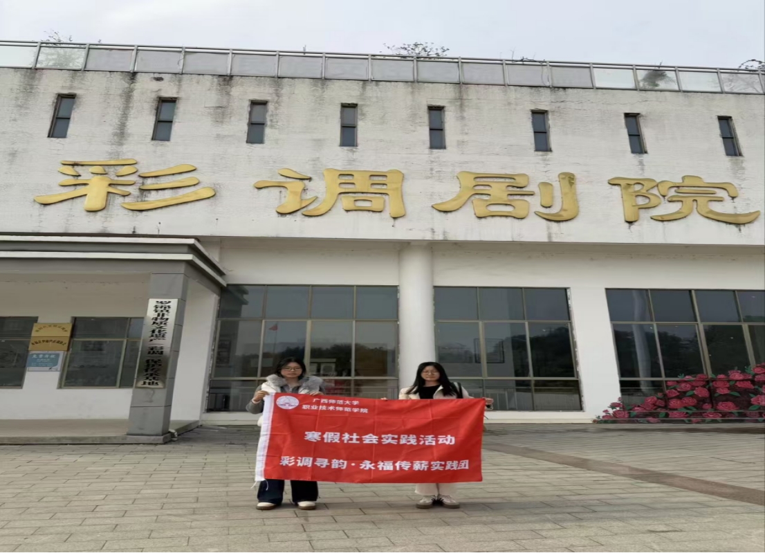 2026年1月11日至13日,广西师范大学职业技术师范学院“彩调寻韵·永福传薪”实践团走进桂林市永福县,开展为期三天的寒假社会实践活动。实践团以国家级非物质文化遗产彩调为核心调研对象,通过文献溯源、实物探秘、活态观摩、根脉探访四大形式,全方位挖掘彩调文化的传承脉络与艺术内涵,以青春视角探索非遗活化传承路径,为彩调文化的创新发展注入青年动能。