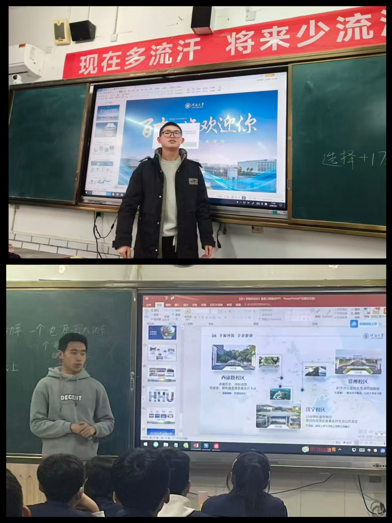 2026年1月29日至2月8日,团队抵达指定中学开展宣传活动,宣讲以河海大学宣传视频开头,接着为同学们展现PPT中的精美内容, PPT中清晰展示了河海大学走过的百年历程,为同学们介绍了河海大学杰出校长。同时,河海大学学科培养方案与发展情况也清晰地展示给了同学们,学校多姿多彩的活动与丰富多彩的校园生活极大地提高了同学们的兴趣,全方位展现河海大学“艰苦朴素,实事求是,严格要求,勇于探索”的校训内涵、鲜明的水利办学特色。宣讲圆满结束,队员们为同学们献上“过来人”的宝贵经验,提供高三复习备考建议。
