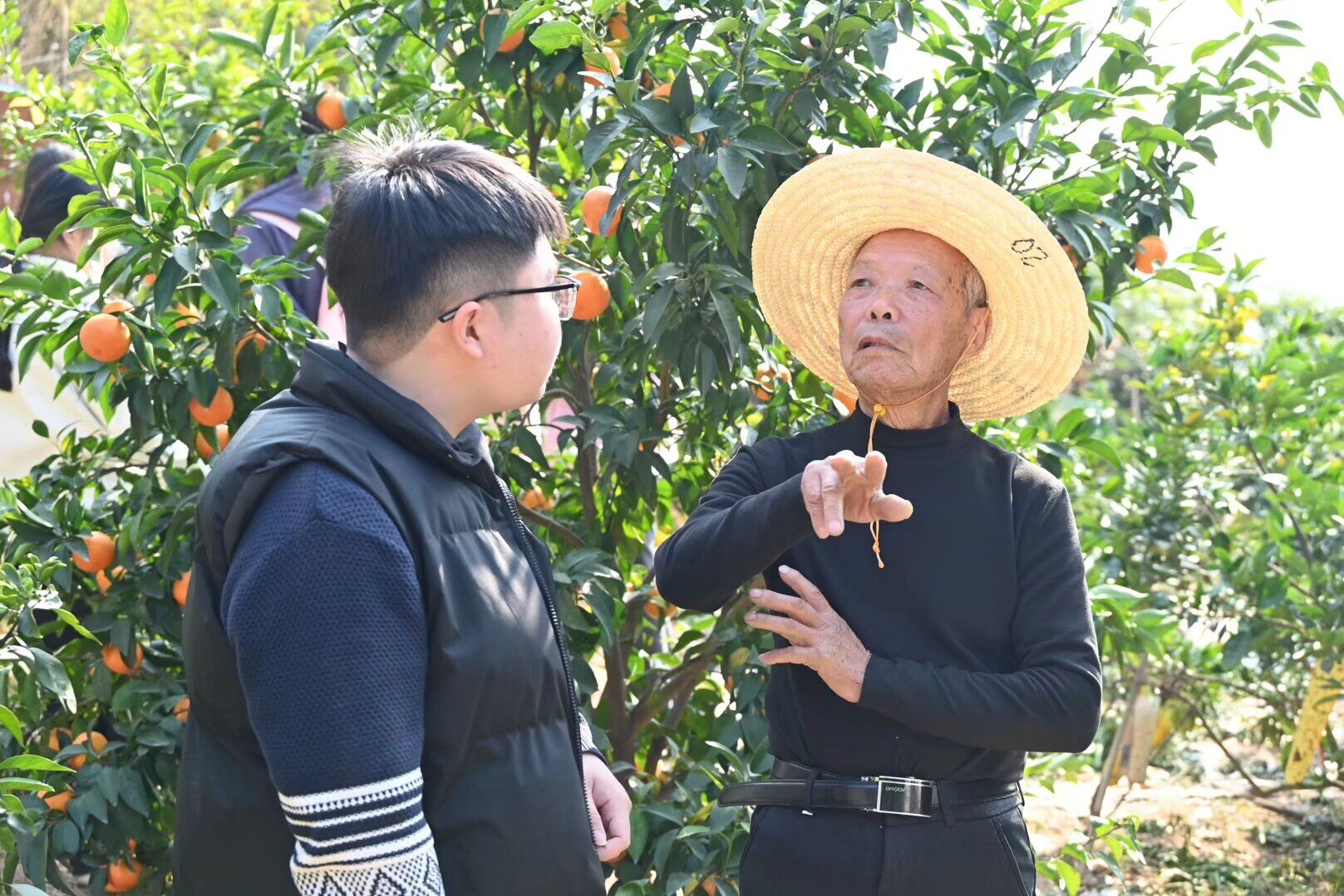 在坚守种植初心的同时,吕伯并未固守成规,而是积极突破传统果园 “坐等收购” 的销售旧模式,探索出了“农家乐现摘现采”的创新方式。游客与熟人可直接入园采摘成果,采摘后现场称斤结算。这种方式既让顾客体验采摘乐趣、买到最新鲜的果实,也缓解了高龄果农采摘、运输不便的难题。“来的大多是认识的老熟人,还有他们带来的朋友,大家尝过咱的沃柑都说甜,每年都定好了等着来摘。”吕伯笑着说。