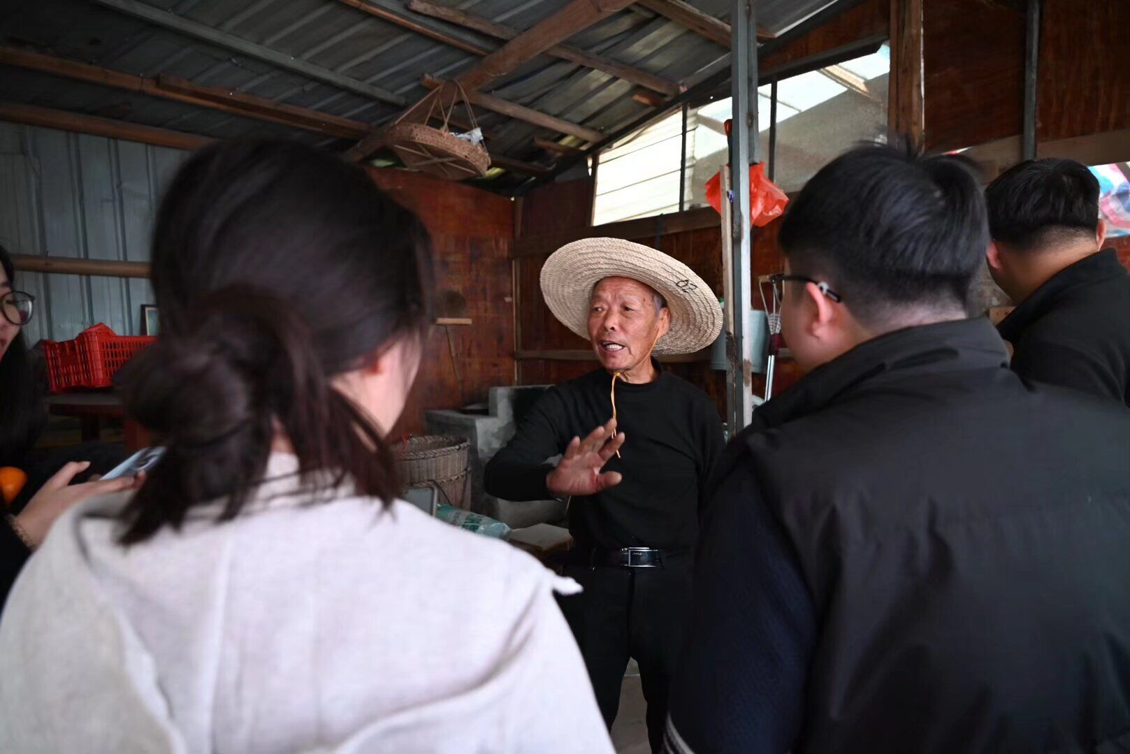 图为吕伯为实践队队员讲解市场情况。吕喆、吴淳淳 供图