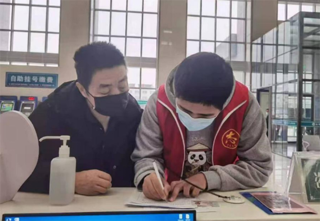 图为实践团成员于宁夏回族自治区朝阳社区所属医院帮助就诊群众指引科室 杨刚 供图