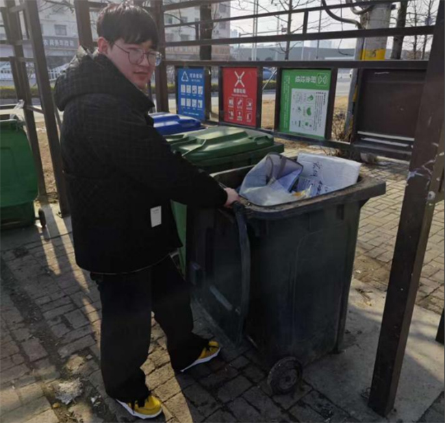 图为实践团成员于徐州市珠江社区清理社区角落堆积垃圾杂物 陈振华 供图