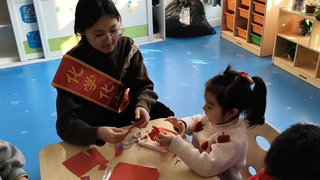 活动伊始,志愿者从非遗剪纸的起源、内涵寓意、发展历程等多个维度,深入浅出地向小朋友们讲解了剪纸的独特魅力与文化价值,指出剪纸作为中国传统文化的瑰宝,承载着中式民间美学与深厚的历史文化底蕴。志愿者借助各式各样的剪纸纹样巧妙地引出非遗剪纸独特的制作工艺,激发了小朋友们对其制作的浓厚兴趣。手工制作环节,在志愿者的悉心指导下,小朋友们手持彩纸一步步创作非遗剪纸窗花,他们尽情发挥创意,认真画出图案、仔细裁剪,经过一番精心制作,一幅幅精巧别致的剪纸窗花在小朋友们手中诞生,活动现场充满了欢声笑语。
