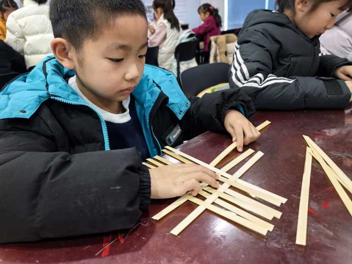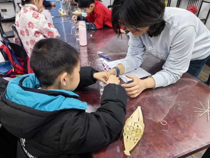 竹编课堂上,非遗文化与儿童教育碰撞出创意火花。老师系统讲解竹编历史与技法后,设计“基础小船编织”与“自由创作”双环节,在保证技能掌握的基础上激发创新潜能。孩子们用竹篾编织出小船、星星、小帽子等实用物件,不仅锻炼了动手能力,更在非遗传承中厚植文化自信,让小学生们成为传统文化的“小小传播者”,为文化振兴埋下新的种子。