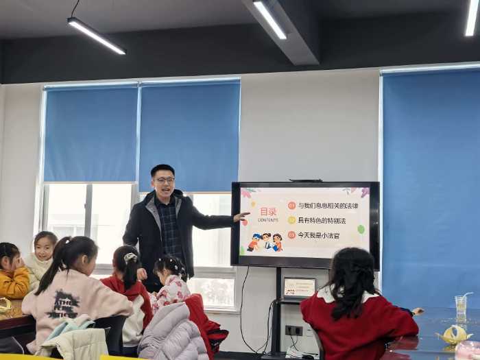 团队成员的法治教育课突破传统说教模式,构建了一个“知识普及——案例研讨——角色体验”的课堂。团队成员通过动画解析法律地位,展现中国特色社会主义法治体系。以情景剧演绎《未成年人保护法》,并选取校园霸凌、网络打赏等贴近生活的案例组织法庭辩论。