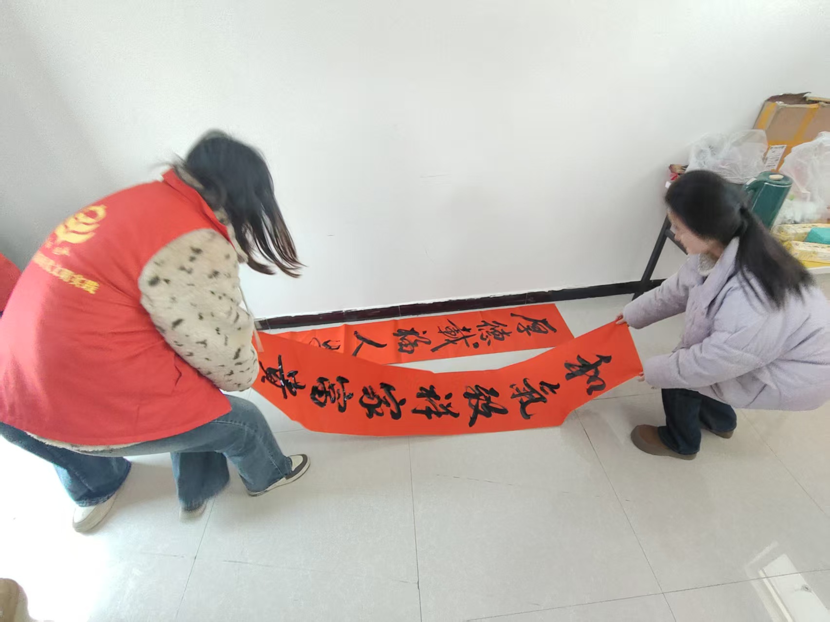 环境清理工作结束后,团队成员来到社区活动室,开展丰富多彩的文化服务与爱心陪伴活动。我们主动协助现场写春联的老师,铺纸研墨、整理作品、传递工具,为社区居民送上新春祝福。同时,大家还手把手教小朋友学习剪纸,从折叠到落剪,耐心指导每一个步骤,带领孩子们剪出福字、窗花等充满年味的作品。在轻松愉快的氛围中,我们还为小朋友辅导寒假作业、解答学习难题、分享趣味故事,没有复杂的理论讲解,只有真诚的陪伴与细致的引导。孩子们认真学习、踊跃互动,脸上始终洋溢着开心的笑容。看着孩子们求知的眼神和点滴进步,每一位队员都倍感充实与温暖。