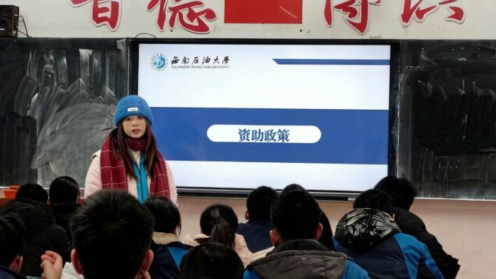 为深入落实国家学生资助政策,打通政策宣传“最后一公里”,让“不让一个学生因家庭经济困难而失学”的保障承诺深入人心,近日,西南石油大学新能源与材料学院2023级储能科学与工程专业学生代文静,作为学生资助政策宣传大使回到资中县球溪高级中学,为高一二班52名学子带来了一场针对性强、内容详实的国家资助政策宣讲。