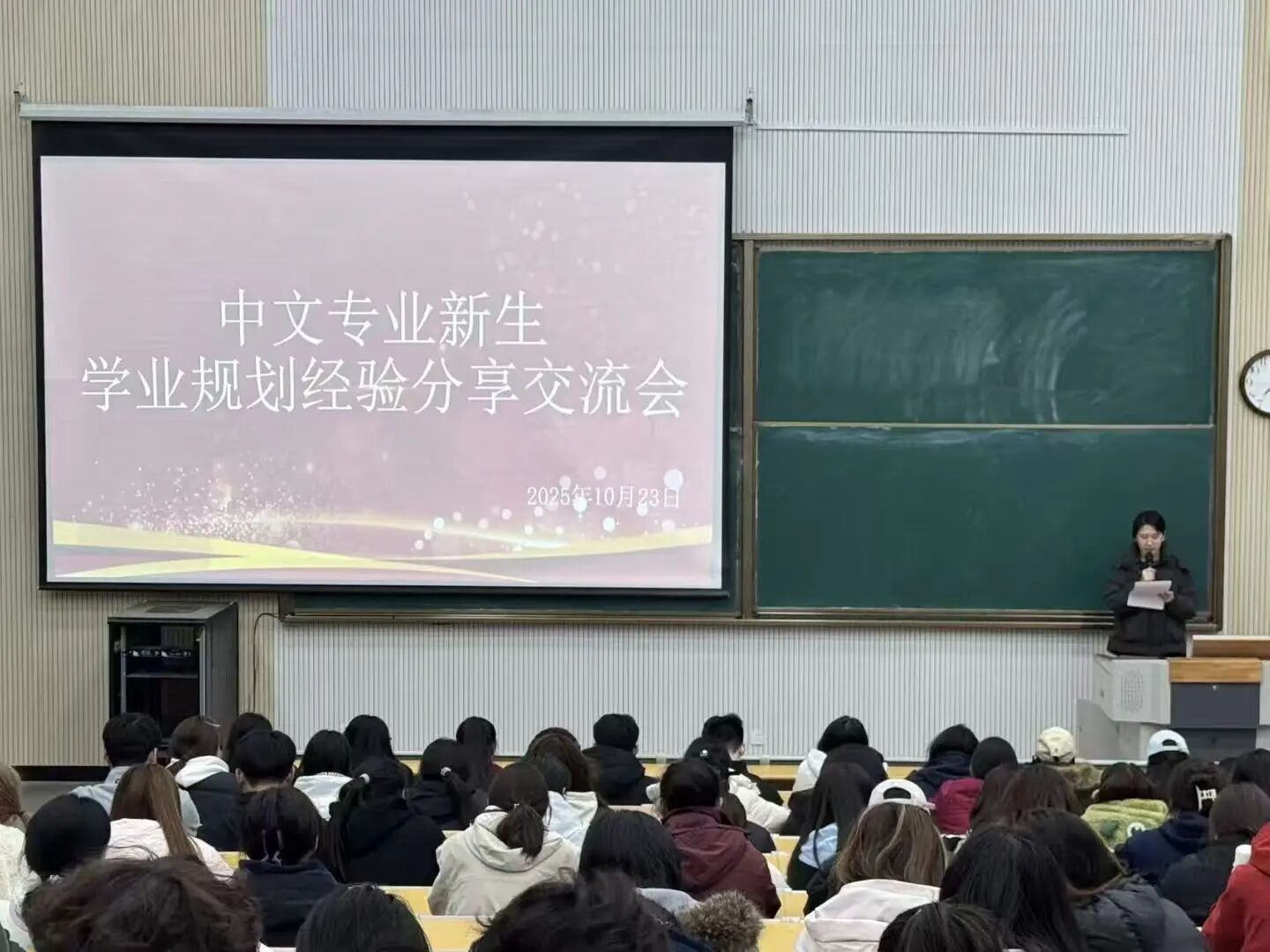 为帮助2025级新生顺利开启大学生涯、明确未来发展方向,2025年10月23日,中文系于知行楼C202教室举办新生学业规划经验分享交流会。本次交流会由中文系优秀毕业生、2025级汉语言文学专升本学生陈姿璇、蒋雨含担任主讲人,全体2025级专科新生参与本次活动。