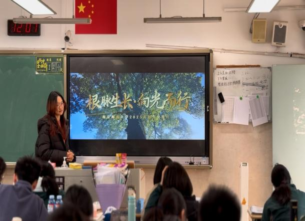 传承师生情谊,反哺成长之路。1月15日至2月7日,育星志愿团成员采取线上线下相结合的方式,跨越四省七地,先后走进福建安溪第一中学、苏州市第十中学校等七所中学,将南京师范大学的温暖与教育情怀,带回各所母校,开展系列宣讲活动。