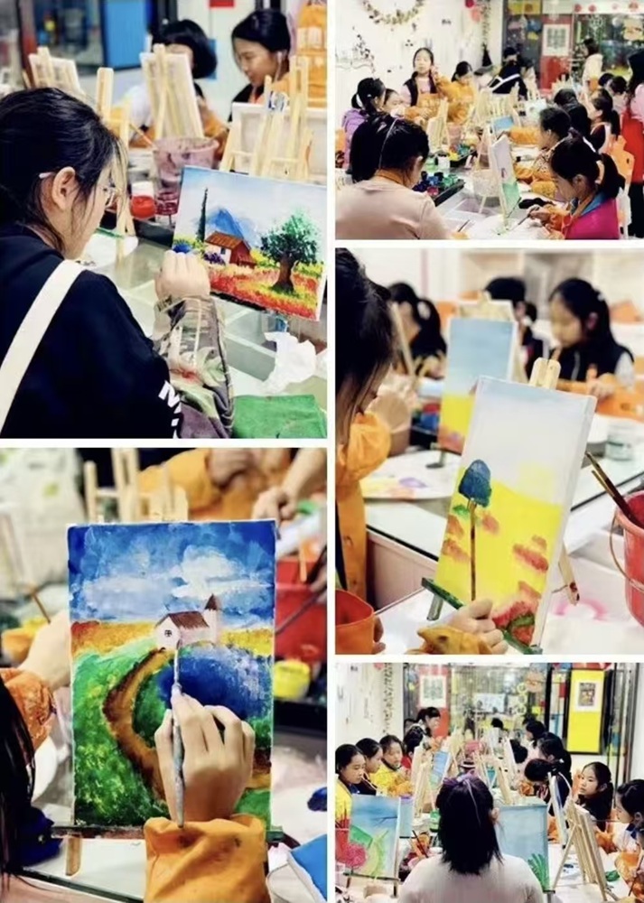 首先是常态化艺术教育辅助。担任美术与舞蹈课程的助教老师,深度参与日常教学管理、学生成长跟踪及家校沟通工作。这不仅是对艺术教育流程的体验,更是对艺术机构日常运营与管理逻辑的观察。面对3至12岁的学员群体,我既是课堂秩序的“维护者”,也是孩子们情绪的“疏导员”。美术课上,协助主教准备物料,针对不同年龄段学员进行差异化辅导,用“游戏化引导”帮助不敢下笔的孩子迈出创作第一步;舞蹈课上,关注学员安全,在基本功训练中做好动作保护,及时安抚因排练压力哭闹的幼儿。课后,及时与家长沟通反馈学习情况。这段经历使我深刻认识到,艺术教育不仅是技法的传授,更是情感连接与精细化管理的综合实践。