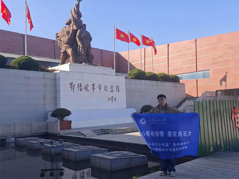 为深入开展爱国主义教育,赓续红色血脉,传承革命精神,2026年1月13日至2月13日,西安石油大学材料科学与工程学院牵头组建的赴鄂豫皖革命纪念馆实践团,远赴鄂豫皖革命纪念馆开展爱国主义教育专项实践活动。该实践团为校级立项专项选题团队,由朱志豪担任队长,马黎辅导员担任指导老师,10名跨院系本科学生组成,在纪念馆内开展参观学习、志愿服务、红色寻访等一系列实践活动,在红色热土中汲取奋进力量。