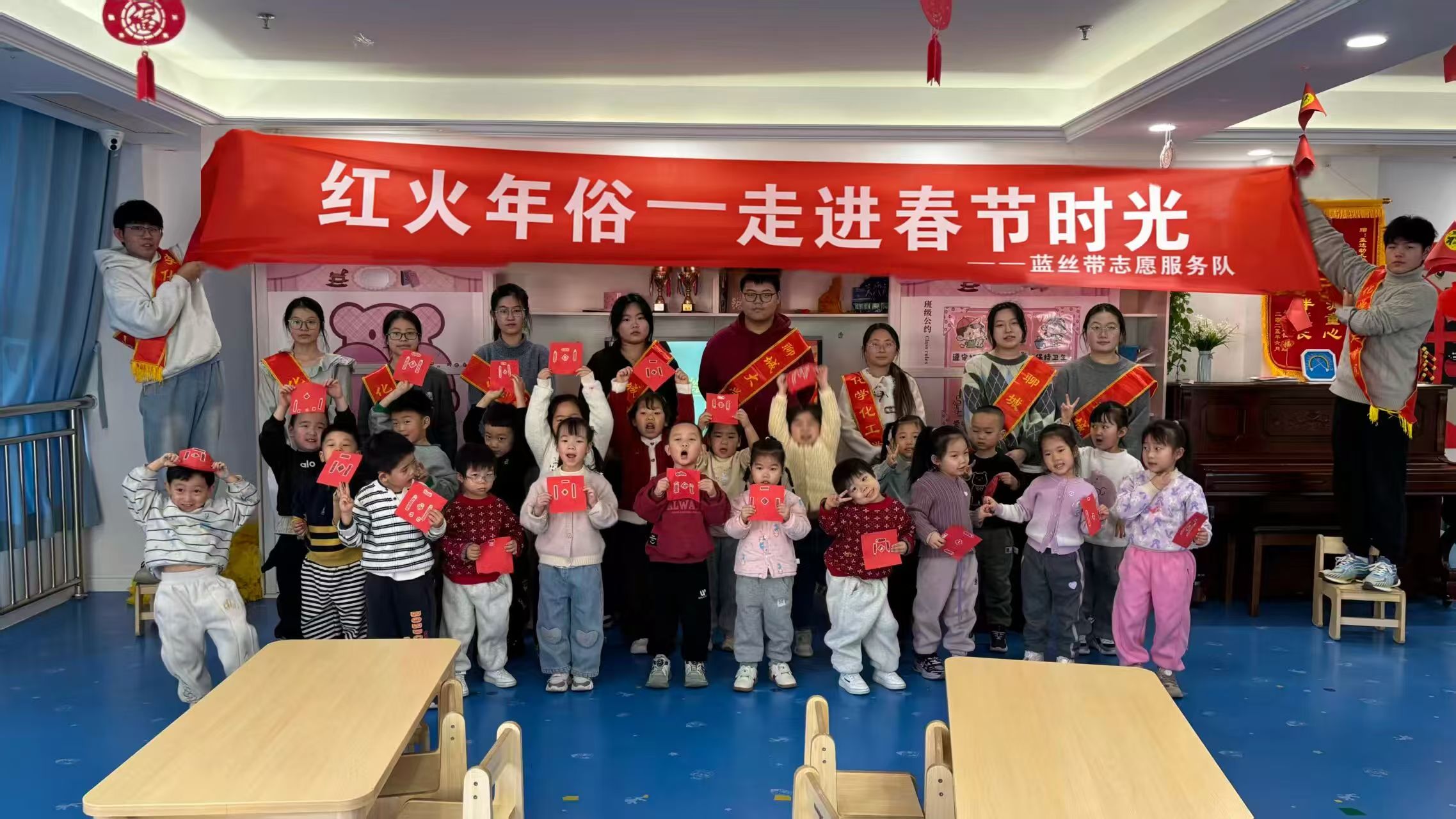 为了让儿童感受中华优秀传统文化、体会春节独有的年味,丰富大家对传统节日的认识,2026年1月23日,聊城大学化学化工学院蓝丝带志愿服务队走进聊城市东昌府区牛津国际孟达幼儿园,开展了“红火年俗——走进春节时光”志愿服务活动。