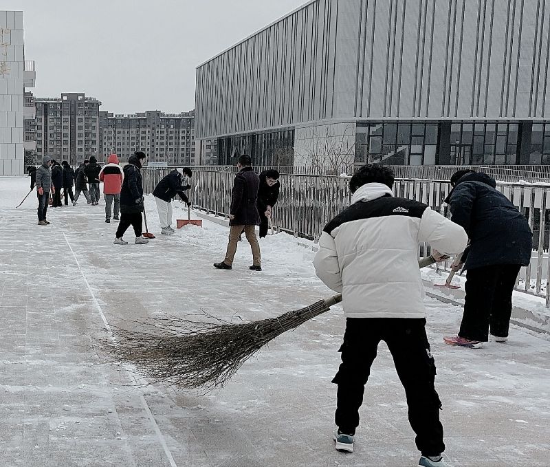 实践队员组织青年学生扫雪 刘梁斌 供图