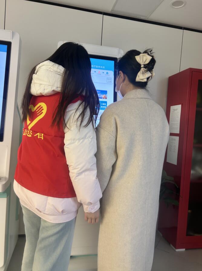 二、现场指导,帮助居民使用自助设备在医院大厅内,实践人员来到自动挂号机与自助缴费设备区域开展志愿服务。随着医院信息化水平的不断提升,自助设备在就医流程中的应用越来越广泛,但部分前来就诊的居民,尤其是中老年群体,在实际操作中仍会遇到一些困难。针对这一情况,实践人员主动上前,为有需要的居民提供操作指导与帮助。