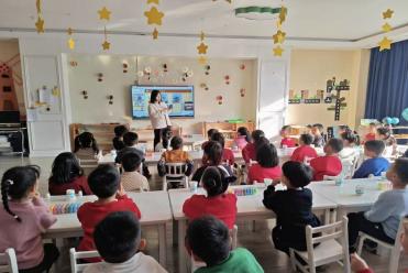 (图为志愿队队员为小朋友讲述铁塔科普知识 供图:邱静怡)