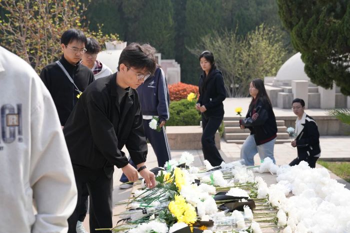 仪式结束后,全体人员移步至园区中心的人民英雄纪念墓前,由学生代表发言。学生代表表示,新时代青年大学生当铭记历史,传承先烈遗志、赓续精神血脉,把满腔的爱国热忱转化为勤学笃行、矢志报国的实际行动,以坚定的理想信念扛起时代重任,彰显青年一代的使命与担当。