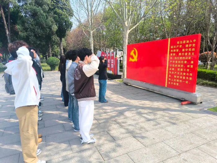 “我志愿加入中国共产党,拥护党的纲领,遵守党的章程……”在庄严肃穆的晋冀鲁豫烈士陵园,学生第一党支部全体党员面向鲜红党旗,重温入党誓词。铿锵有力的誓言在陵园上空回荡,这不仅是对先烈英灵的告慰,更是青年党员对党和人民许下的庄严承诺。