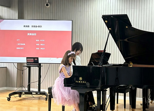 在课程尾声的汇报展示中,琴童与师范生一同登台演奏所学曲目,将8周的学习成果转化为舞台上的音乐呈现。孩子们稚嫩却自信的演奏,不仅展示了钢琴启蒙学习的阶段性收获,也体现出他们在音乐感知、课堂参与和表现意识方面的成长。对于孩子们而言,这不仅是一次成果展示,更是一次自我表达和建立信心的重要经历。
