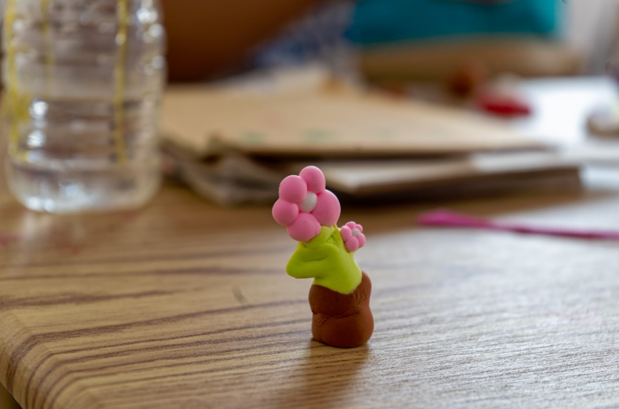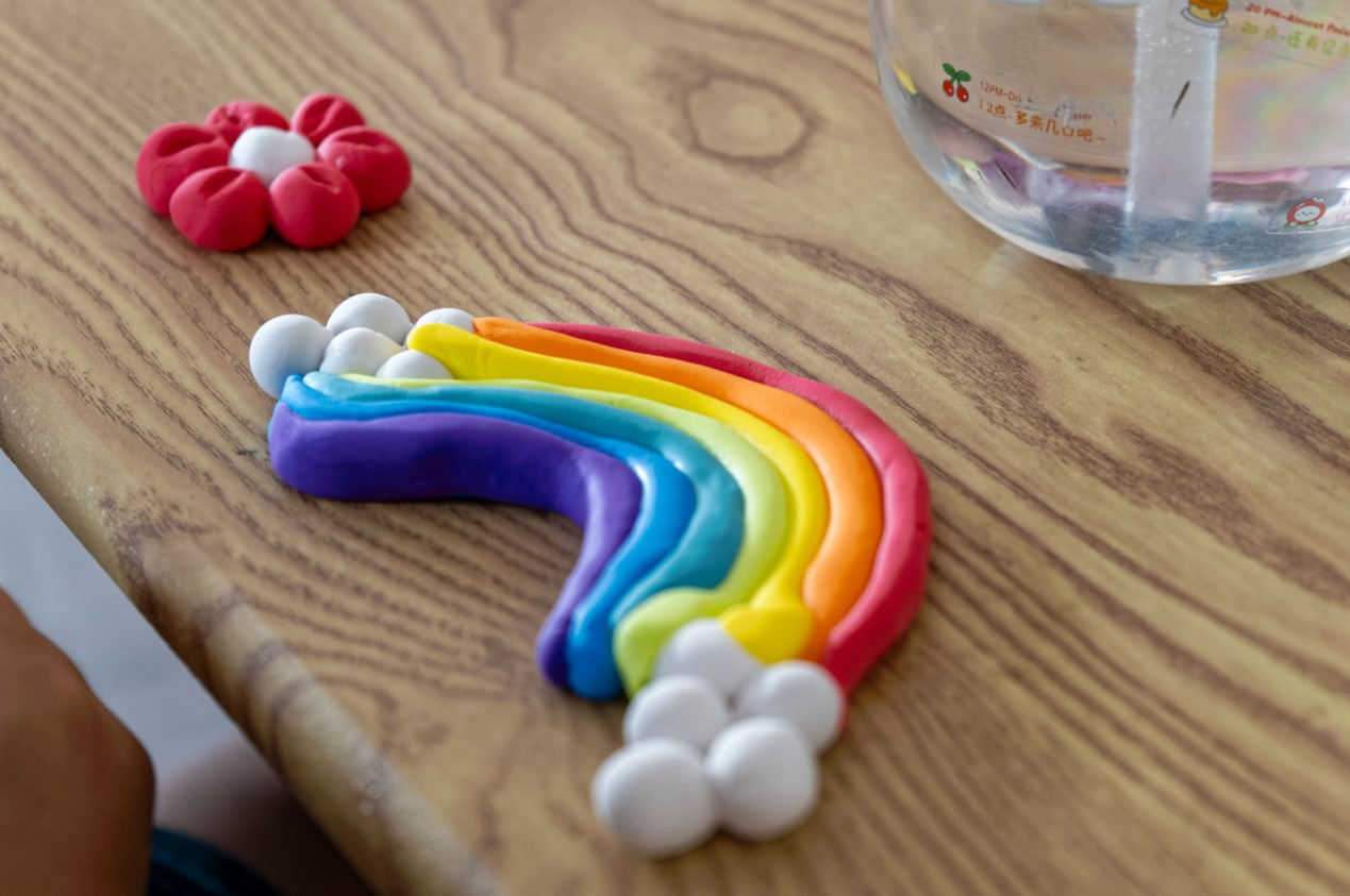 粘土色彩和三原色,激发了学生们的听课兴趣。通过对于超轻粘土特性的介绍,呈现一些作品展示的图片,让同学们充分了解了超轻粘土。接着让同学们动手实践,完成自己的粘土作品。