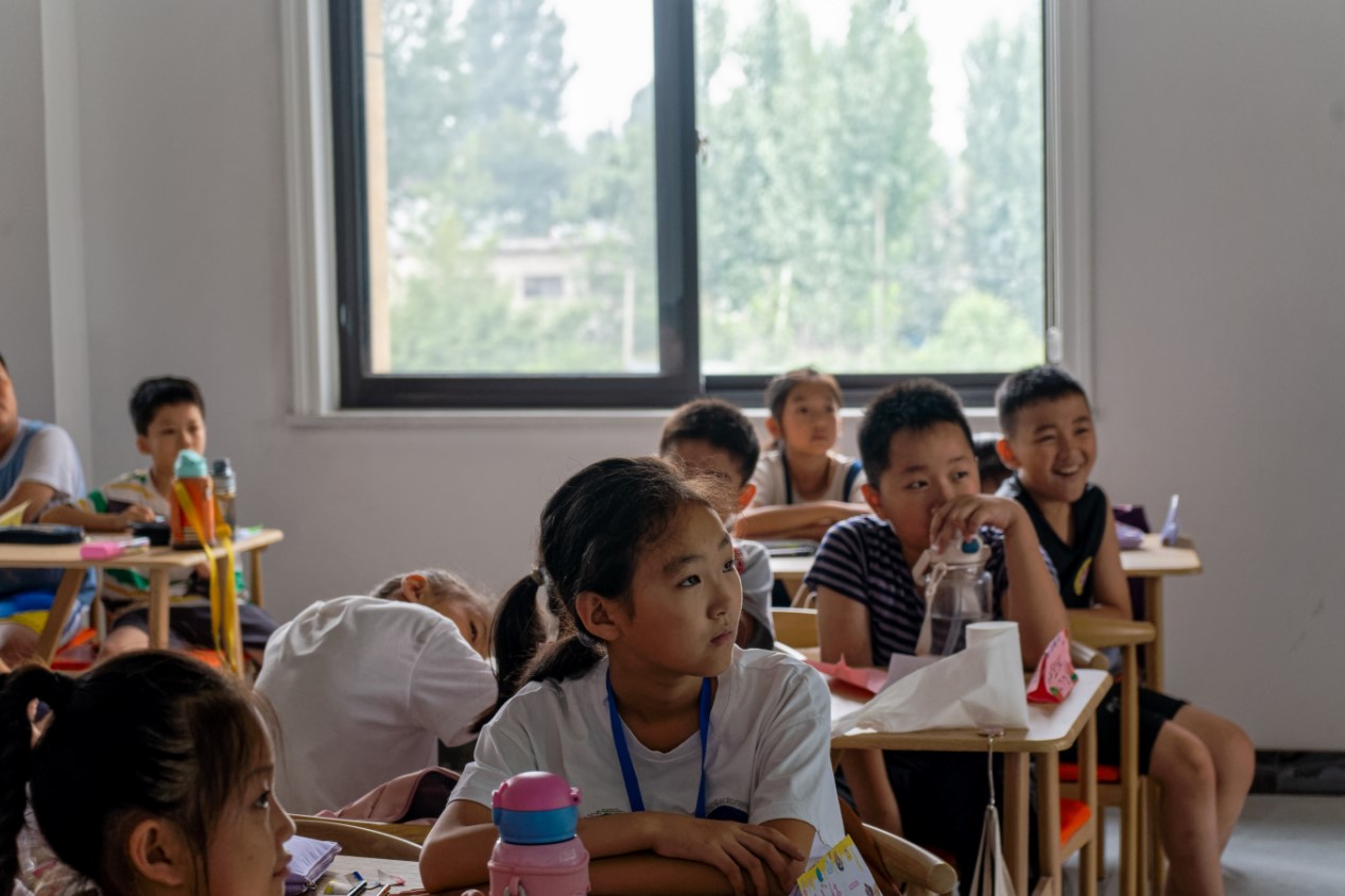 7月20日早,随着同学们陆陆续续进入教室,在自己的座位上坐好,支教队队员徐晗给同学们上今天的第一节课“