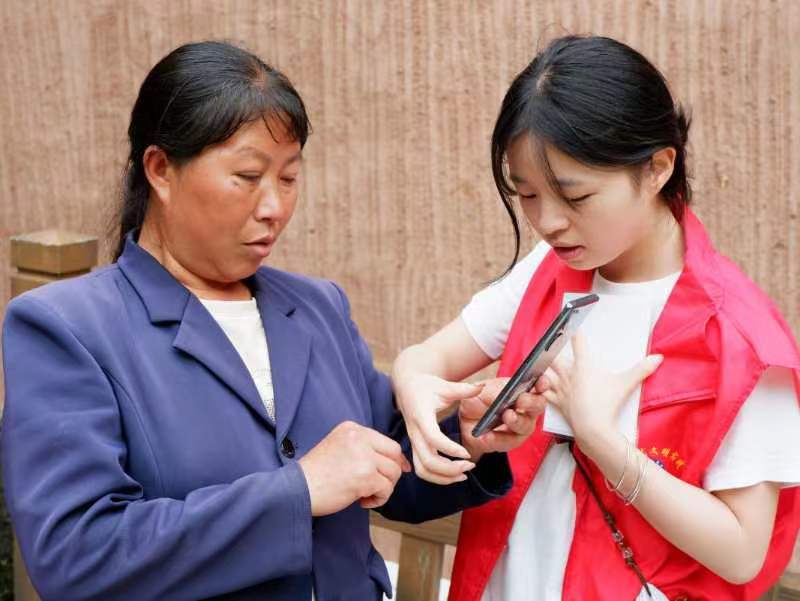 图为团队志愿者教老人使用智能手机