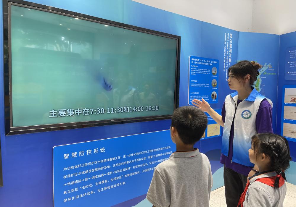 活动的最后,实践团成员们带领着小朋友们来到了宣教厅,一起观看了江豚的观测视频,并对小朋友进行了江豚知识测试。通过测试,成员们发现小朋友们已经对江豚有了初步的认知,也认识到了江豚保护的重要性。