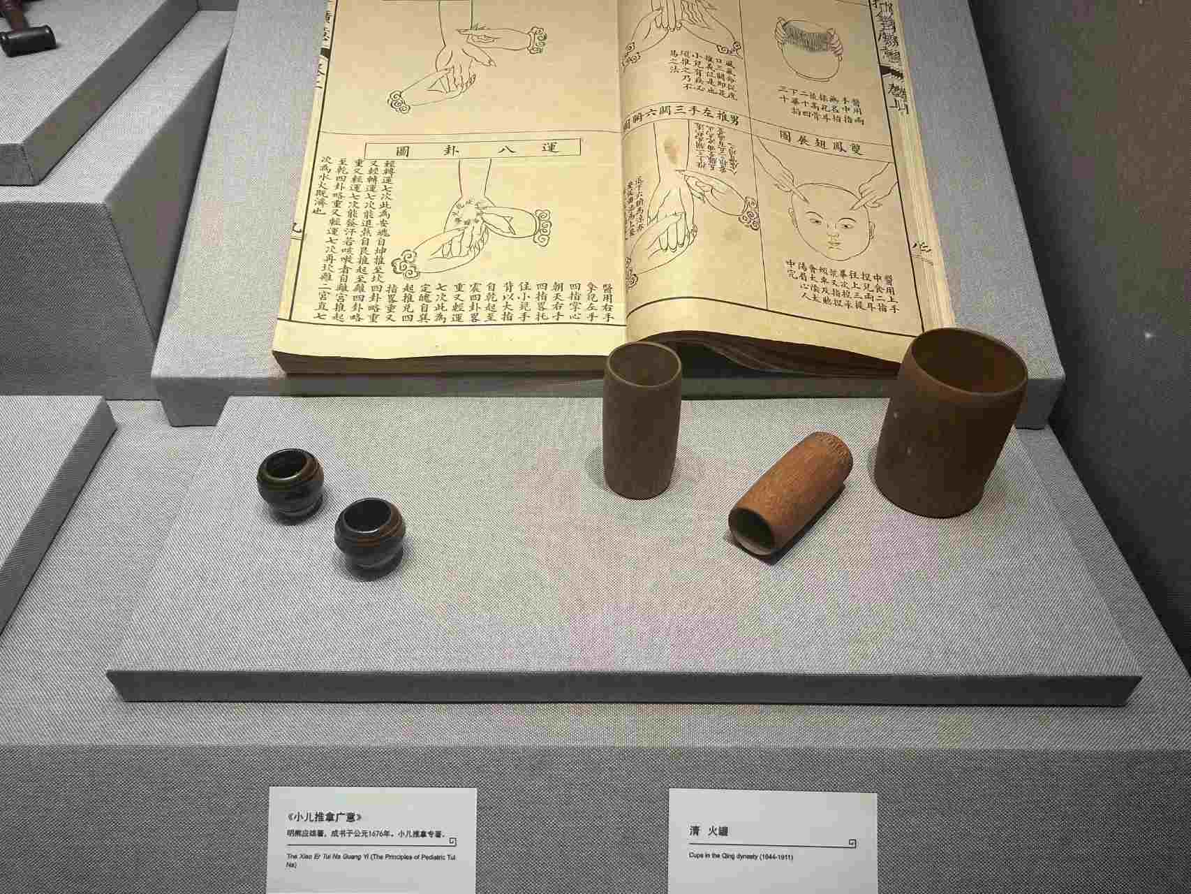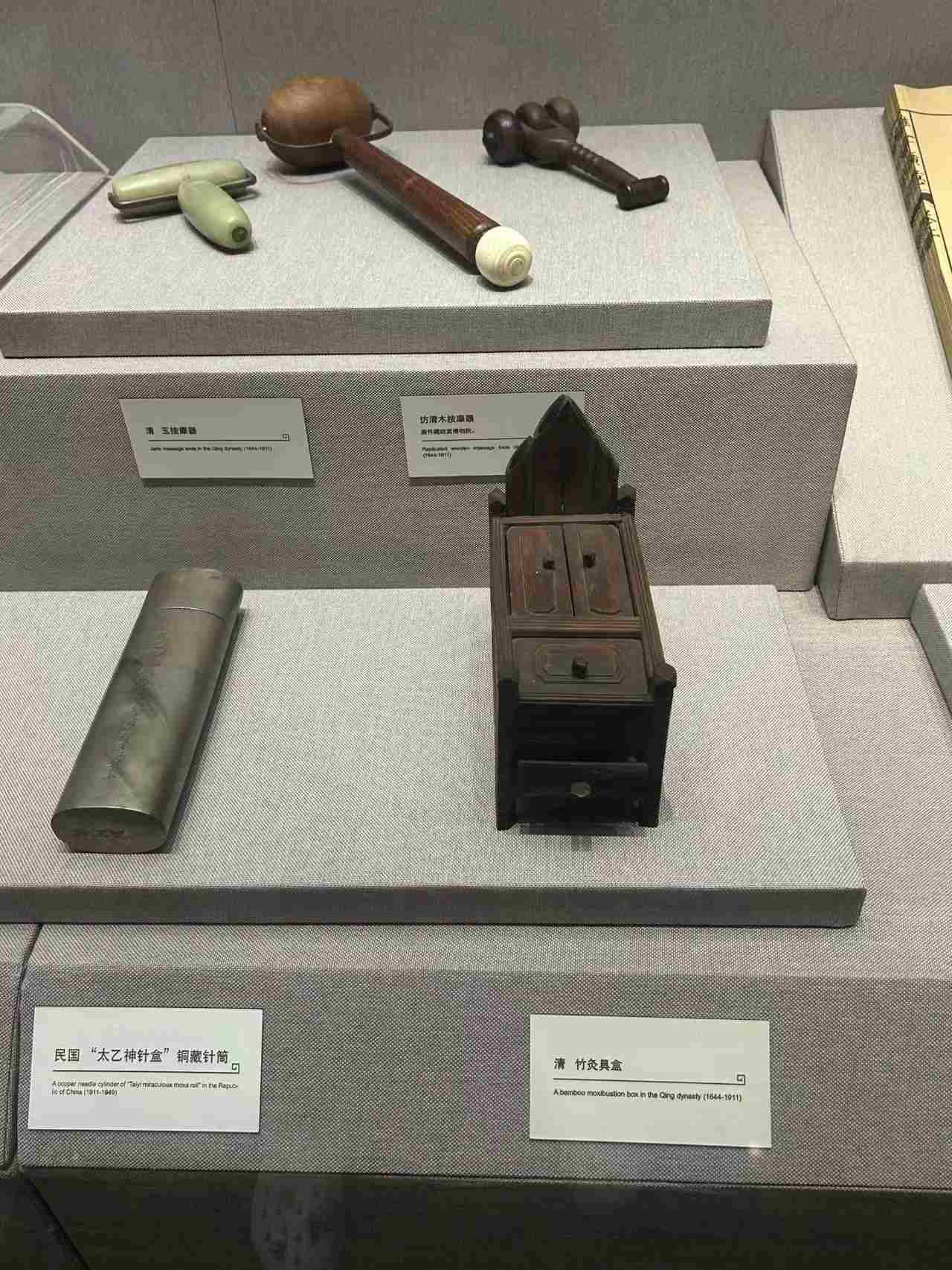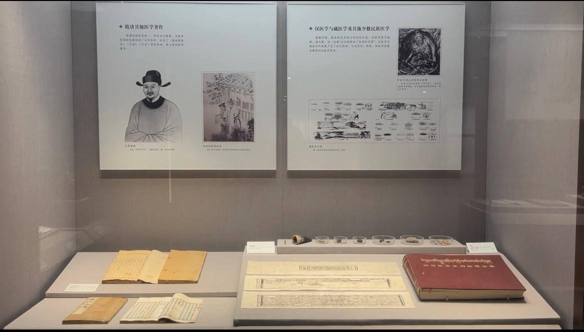 其余展品还有晋代医家皇甫谧的《针灸甲乙经》、明代医家杨继洲的《针灸大成》等等。中医文化馆,主要展示的是中医名家的书法、绘画作品和历代医家的处方手迹,反映了中医药深厚的文化底蕴。位于二楼正中央的是康复养生馆,展示了与日常生活有关的文物,古代的卫生环境,古代劳动人民日常保健的主要方法,这些对现代生活保健仍有深刻的启迪。