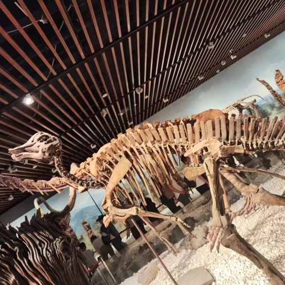 图为南京博物院恐龙化石展品 通讯员 何伟 供图 后来,团队成员重点参观学习了特展馆、数字馆和非遗馆三个场馆。在特展馆内,欣赏来自英国维多利亚与阿尔伯特博物馆收藏的150件精品,感受不同文化艺术之间的交流融合;在数字馆内,体会用光影、多媒体等科技互动方式学习中华文明的发展历程的无穷乐趣;在非遗馆内,了解江苏省国家级非物质文化遗产名录项目,近距离观赏非遗传承人传统技艺的现场展示并有幸亲身体验。伴随着讲解器中讲解员绘声绘色的介绍,团队成员仿佛乘坐上了时光机,在历史的长河里遨游,不时地用相机和手中的笔记录下每一个有价值有意义的瞬间。