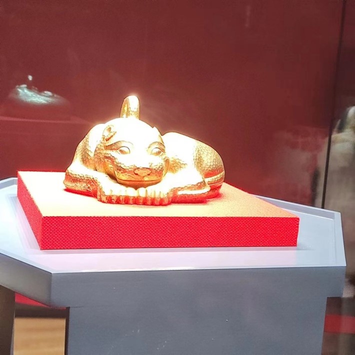 南京博物院展品“金兽”通讯员 何伟 供图随后,我们来到了另一个场馆,这里摆满了各种各样的文物标本,通过工作人员介绍,这些都是古代一些 动物的化石标本,它们历经了多少风风雨雨才最终呈现到我们的面前,不过也并非都是完好无损的,大多都是 破损的,文物是传承历史与文化的重要载体,承载着过去的智慧、价值和创造力。所以不仅是我们,也要呼吁 大家保护这些历史文物,更好的了解它们,文物作为历史的见证者,对社会的发展有巨大的推动作用。我们应该积极参与文物保护与传承,共同努力实现文物的传承和永久保存。
