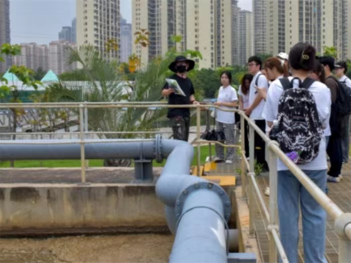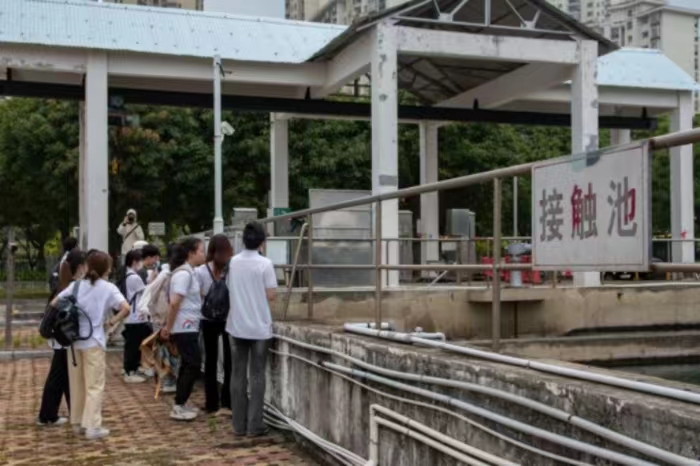 图 工程师为实践队员介绍海沧水质净化厂基本情况