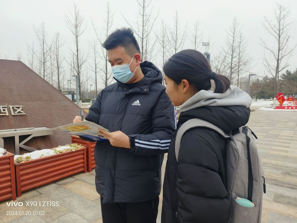 淄川体育公园位于山东省淄博市淄川区鲁泰文化路、将军路、淄城东路中间路段,总体占地面积约15公顷,体育设施类型多样、质量良好,基础设施较为完善,内有各类球场、田径场地、健身广场、儿童乐园等公共体育场地和休闲场所。考察当天下着小雪,依旧有不少居民在此处锻炼。实践队员随机向在体育公园锻炼的居民询问公共体育设施相关情况,并收取调查问卷,了解当地居民对全民健身背景下的公共体育服务现状的评价和对未来发展的期待。