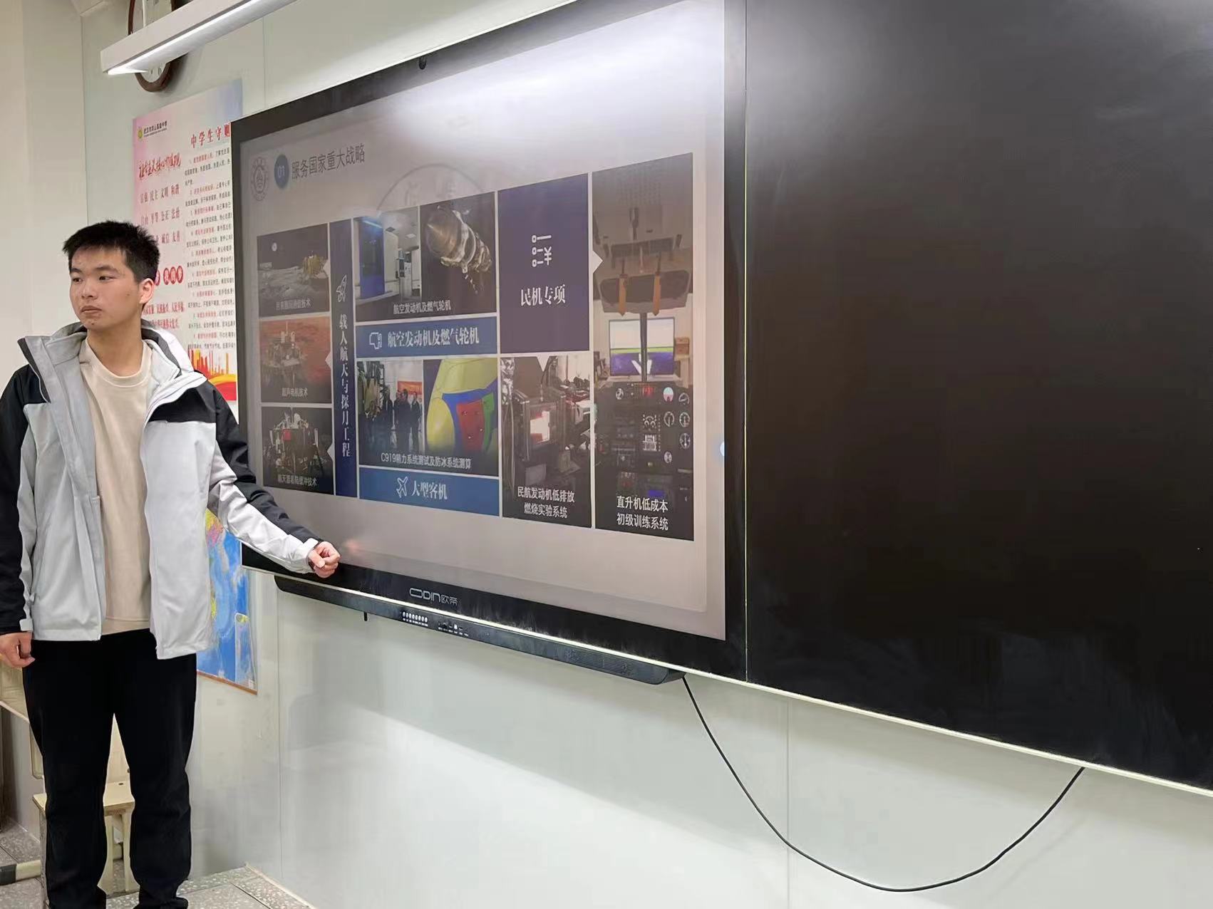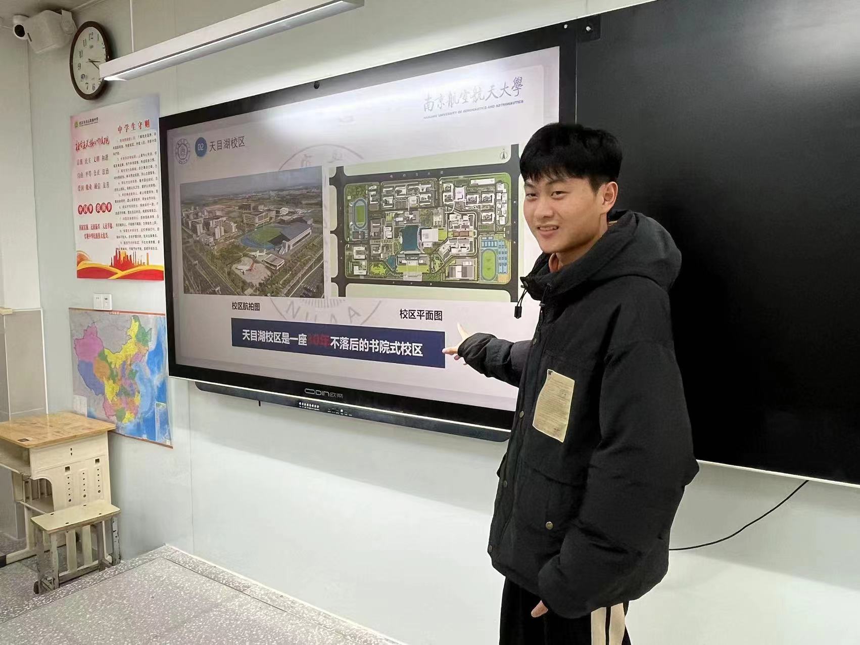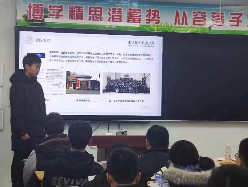 宣讲会在洪山高级中学的教室内举行,吸引了众多师生的关注。宣讲团成员们首先通过一段精心制作的视频,向在场的师生们展示了南航的历史沿革、学科优势、校园环境以及丰富多彩的校园生活。视频中,南航的校园美景、先进的实验室设备、充满活力的学生活动一一展现在大家眼前,引起了在场师生的浓厚兴趣。