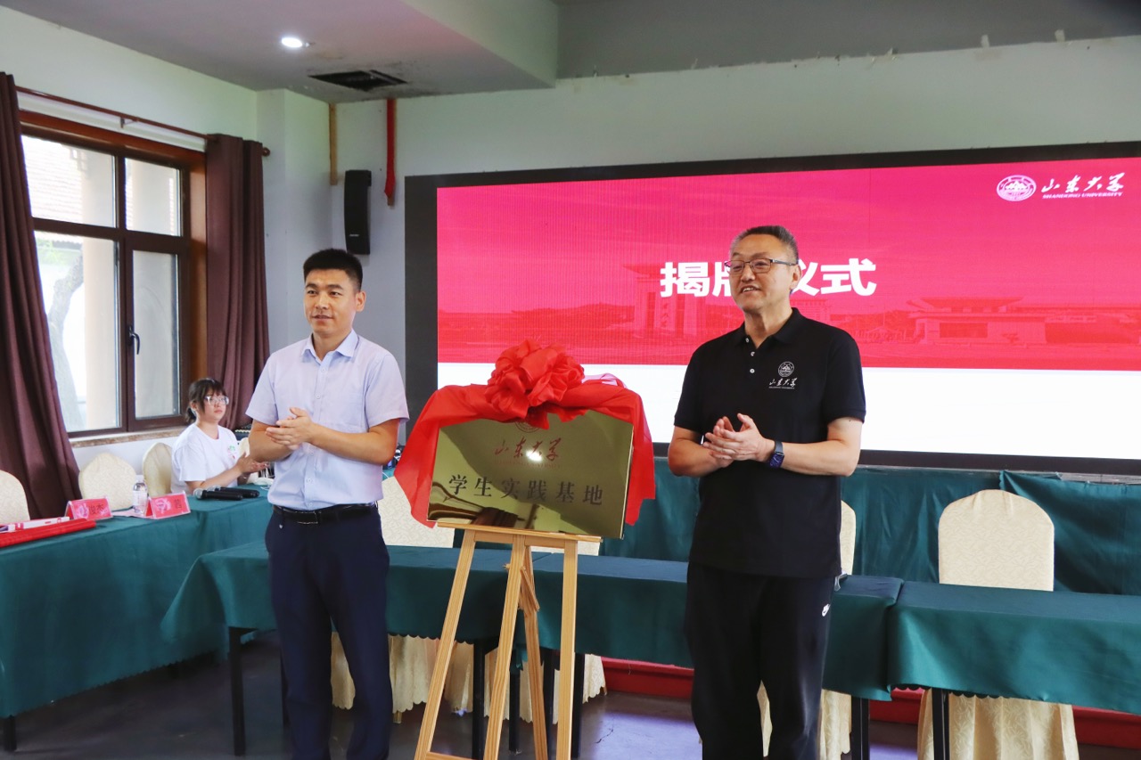 在开营仪式上,李首佐致欢迎辞,并介绍了本次银杏果在南墅镇东鲁生态产业园开展活动的目的和意义。随后,常伟东致辞,表达了对双方建立合作的期待,并祝愿活动的顺利举行。紧接着,彭俊杰与常伟东签署学生实践基地合作协议,共同为山东大学学生实践基地揭牌。