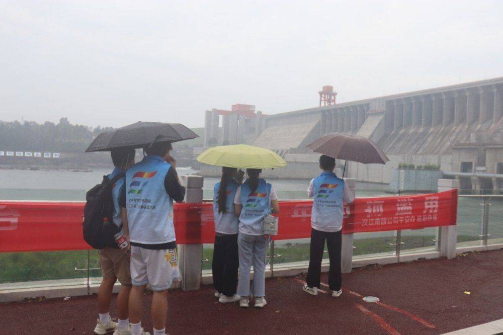 7月8日上午,“碧水丹心"生态文化调研队来到了丹江口大坝开展了他们一天的调研活动。在朦胧的清晨,调研队员们穿好了队服,手举旗帜,精神饱满整齐的站在了丹江口大坝景区门口,进行了他们的第一次打卡拍照。简单的几句口号呼出宣告着“碧水丹心”调研队伍活动的正式开始。