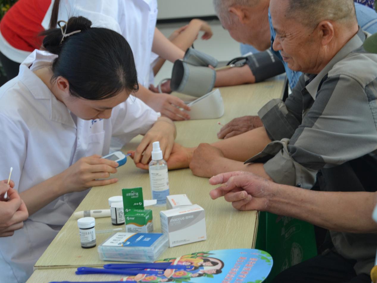 图为队员为群众进行血糖测量