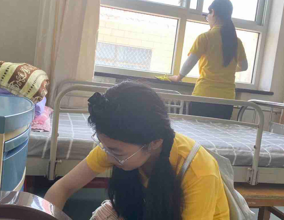 7月4日来到了惠丰养老苑开展志愿活动。 七月的炎热天气下,志愿者们秉持着“为老人服务”的宗旨,全身心投入志愿活动。他们不畏酷暑,穿梭于各个房间,黄色身影忙碌而坚定,以辛勤的劳动为老人们营造更加舒适的居住环境,每一处细节都彰显着他们的“精益求精”。